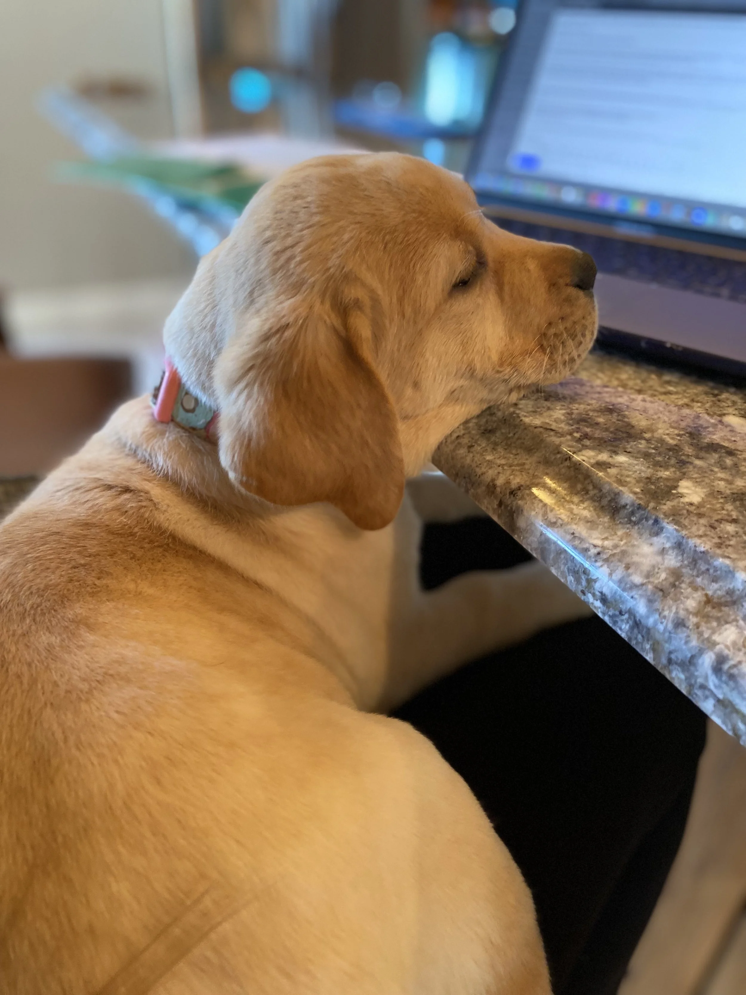 A Joyful Companion: We lovingly call Lemon our Old Lady Lemon even at a year old she is an old soul. Incredibly lovable and happy to do anything that is asked of her. She is the quintessential Labrador.