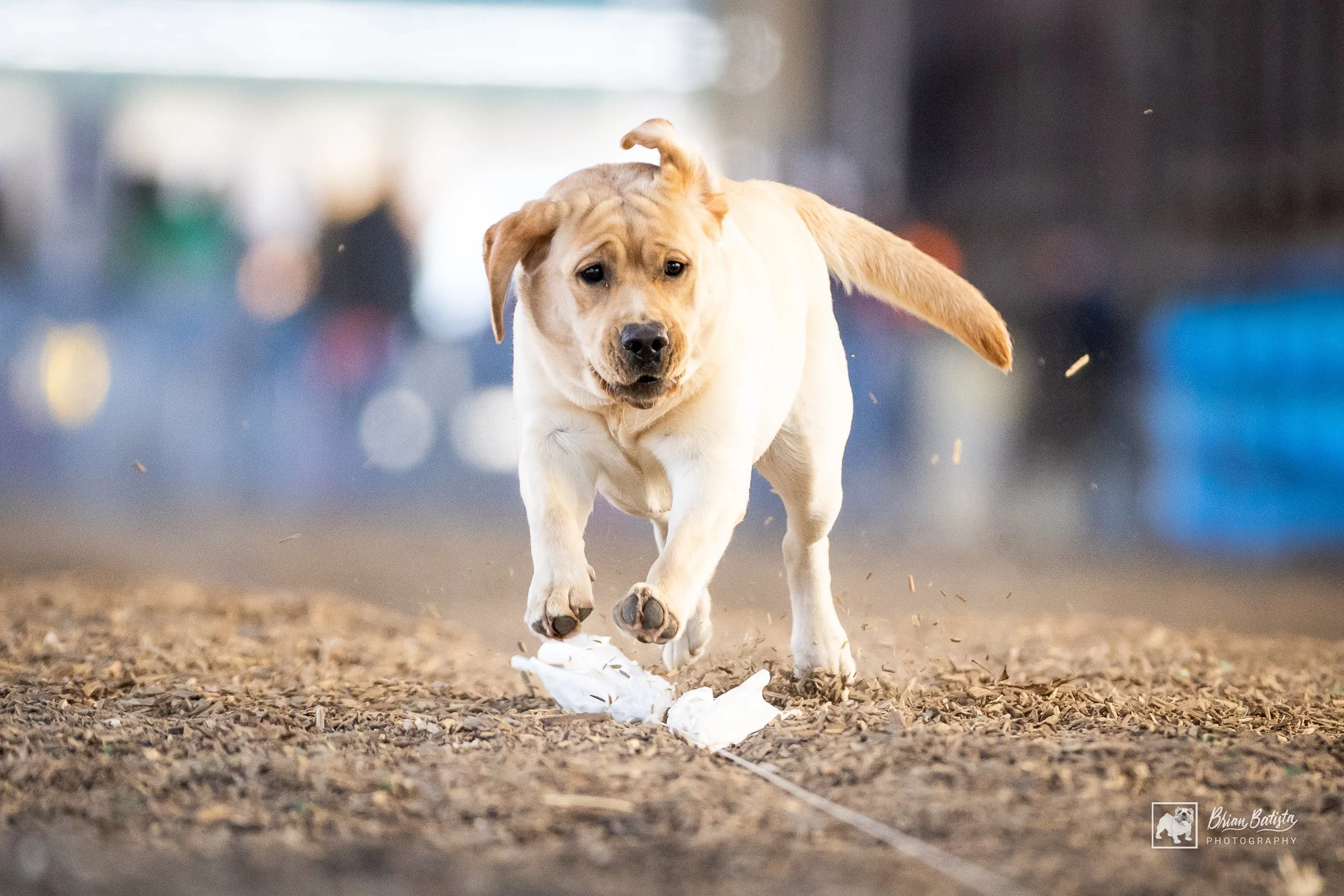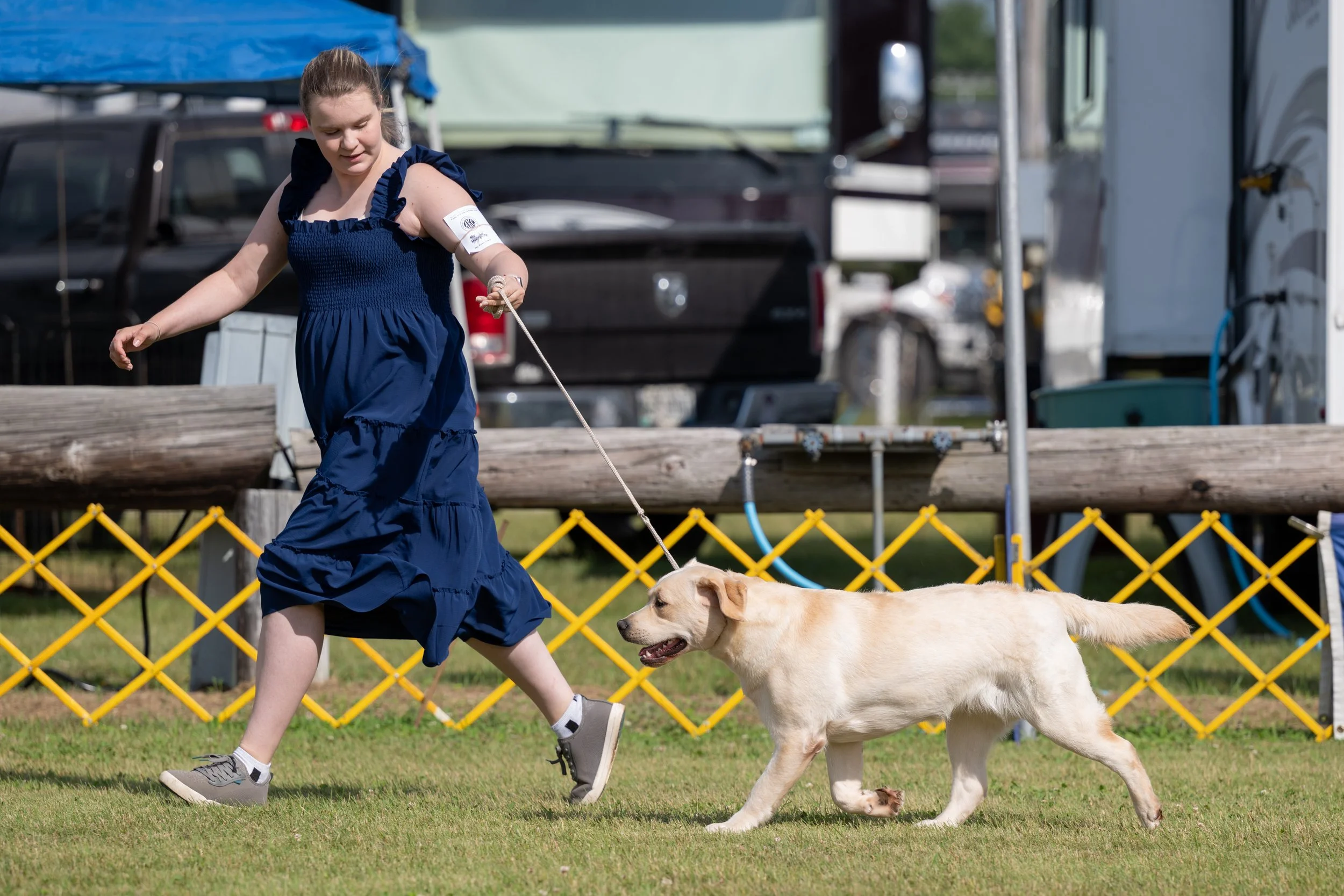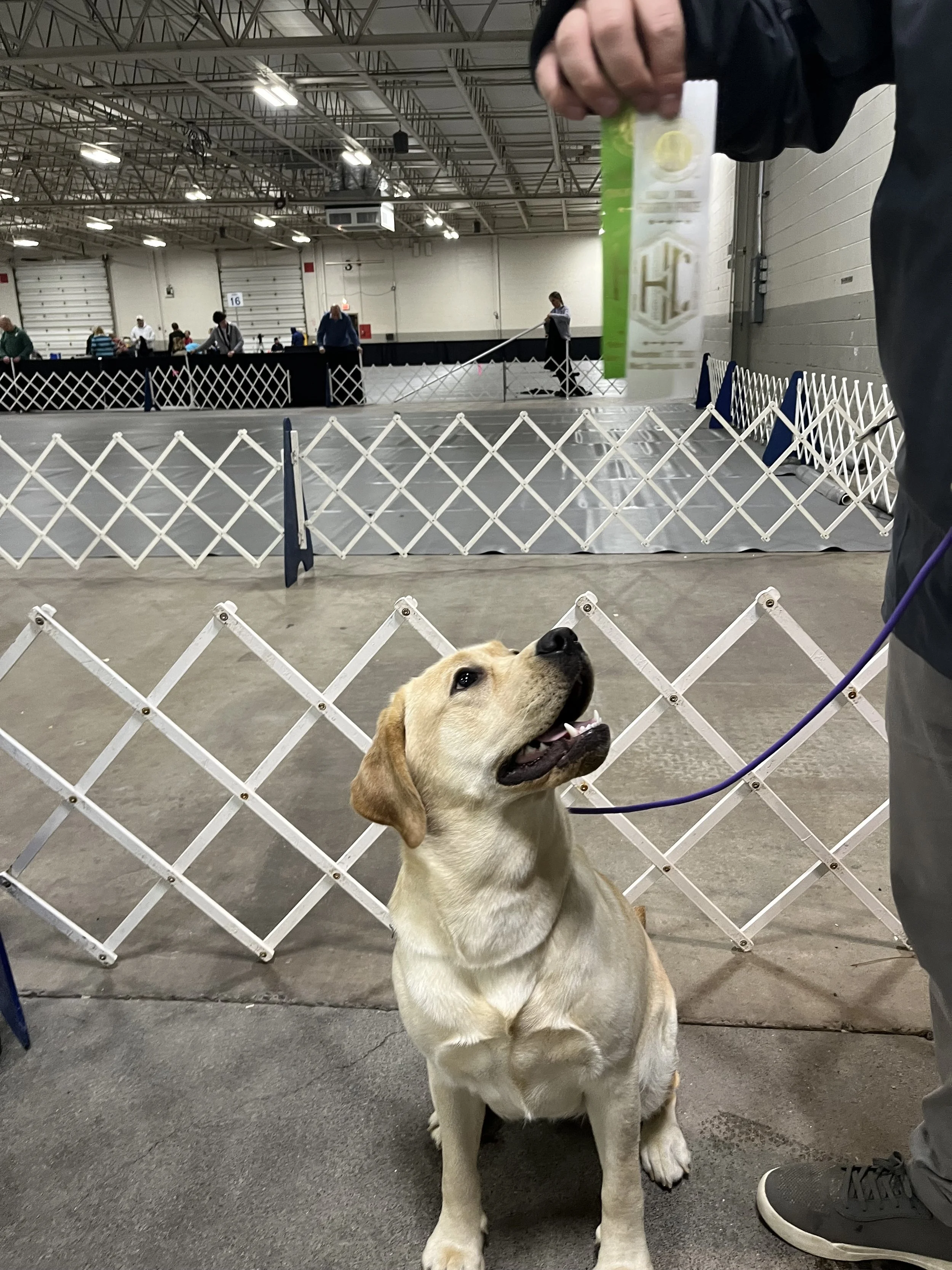 Achievements and Qualities: Laney has one pass towards her Junior Hunting title. She has recently finished her AKC Championship with multiple Best Of Breeds from the classes. Notably, in 2024 at Potomac, Laney placed 2nd in a beautiful Open Yellow Bitch class.